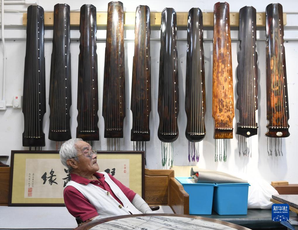 10月7日,蔡昌壽坐在古琴工作室里。 新華社記者 陳鐸 攝