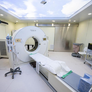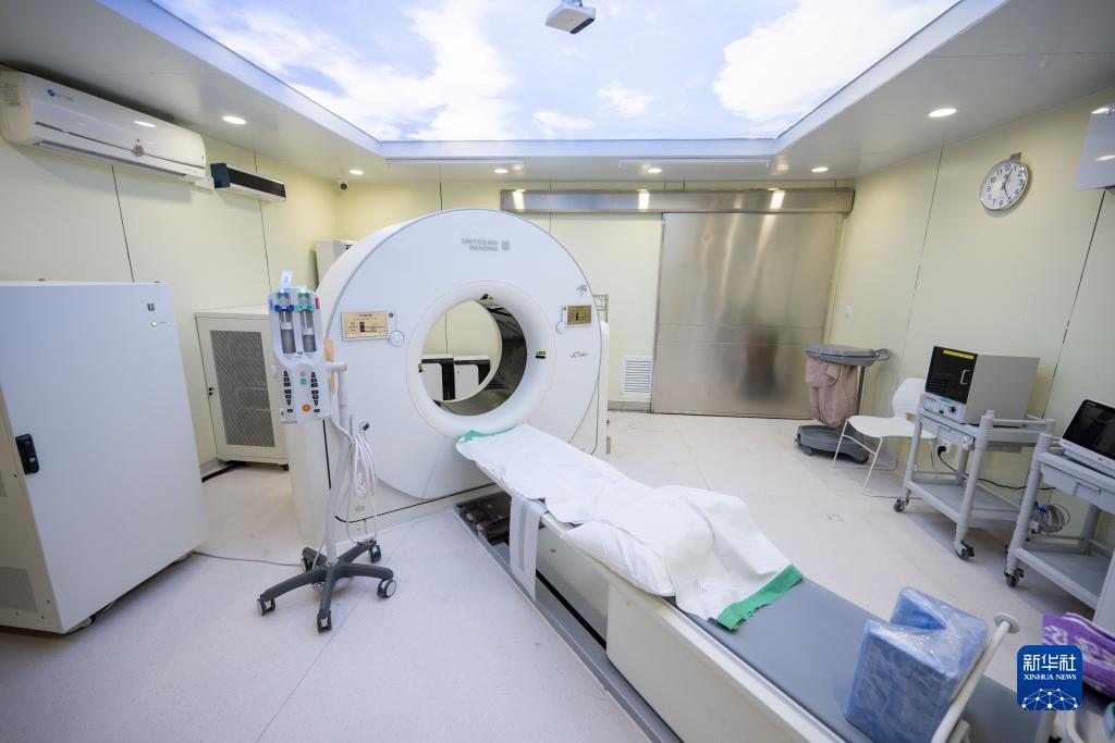 檢查室里設有先進儀器,房間天花板的設計也別具心思:藍天白云的圖案,令病人躺下做檢查時猶如仰望晴空,有助于放松心情。