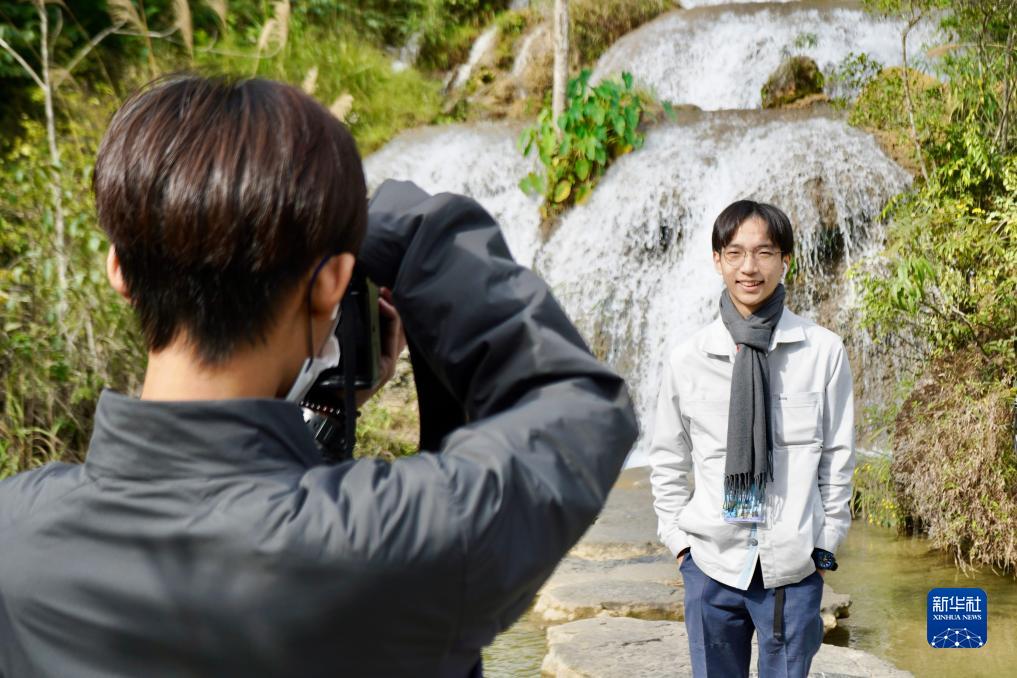 手持相機,香港學生何彥羲不停地拍下沿途美麗的風光。透過鏡頭,獨特的拍攝視角、用心的攝影構圖無不透露著他對貴州自然山水的喜愛。