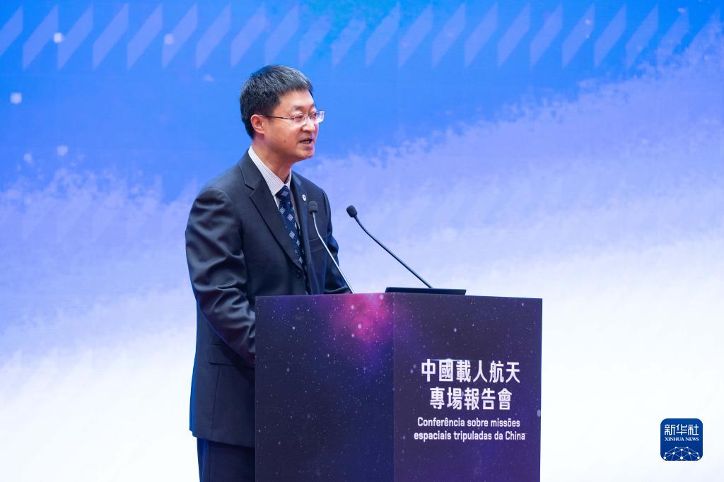 12月2日,空間站系統總設計師楊宏在報告會上發言。新華社記者 張金加 攝