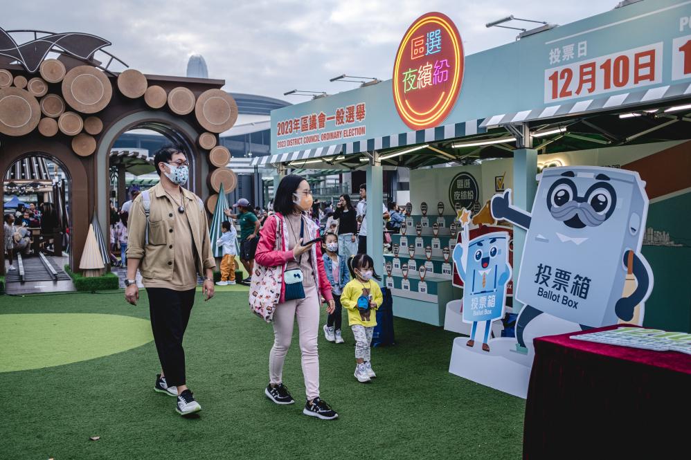 12月9日,市民在香港灣仔海濱參加“區選繽紛日”系列活動。新華社記者 孟佳 攝