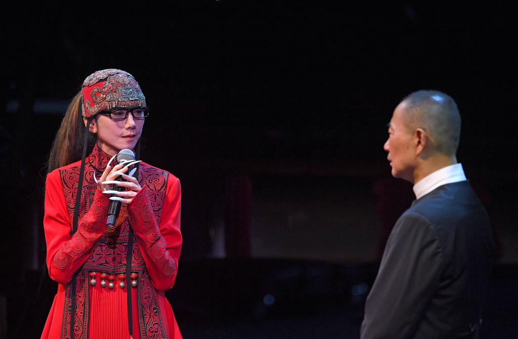 12月6日,楊麗萍(左)在“譚盾WE-音樂節”上和譚盾一起與觀眾見面。新華社記者 陳鐸 攝