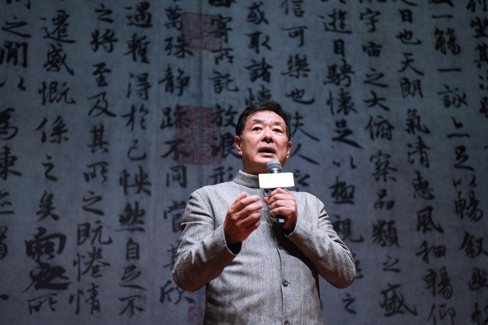 1月9日,濮存昕在香港故宮文化博物館講座現場即興朗誦《蘭亭集序》。新華社記者 陳鐸 攝
