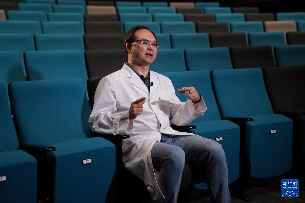 香港電影資料館助理館長勞啟明接受新華社記者專訪(2023年12月13日攝)。新華社記者 王申 攝