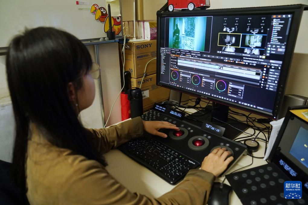 在香港電影資料館,“90后”技術員文婉汀在對電影進行數字修復(2023年12月13日攝)。新華社記者 王申 攝