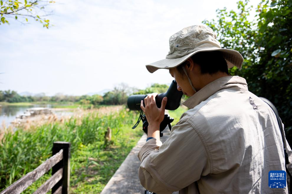 1月11日,工作人員在米埔自然保護區觀察鳥類。新華社記者 朱煒 攝