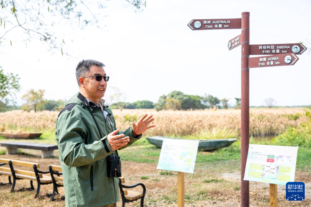 1月11日,世界自然基金會香港分會米埔保護區及遷飛路線保育項目總監文賢繼在米埔自然保護區介紹候鳥遷徙路線。新華社記者 朱煒 攝