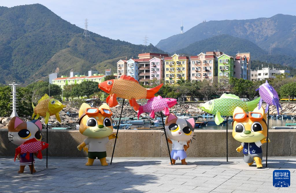 這是1月25日在香港沙頭角魚燈廣場上拍攝的手持魚燈的“活力仔”和“思文喵”。新華社記者 陳鐸 攝