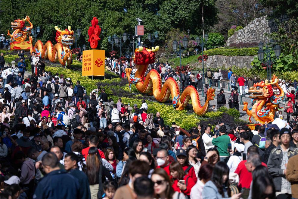 剛剛過去的春節假期,見證了內地居民對澳門旅游的強勁拉動力。據初步統計,春節假期(2月10日至17日)澳門入境旅客接近136萬人次,其中內地旅客103.5萬人次,占訪澳旅客總人數的76.2%,日均超過12.9萬人次,較2023年春節假期日均上升243%。