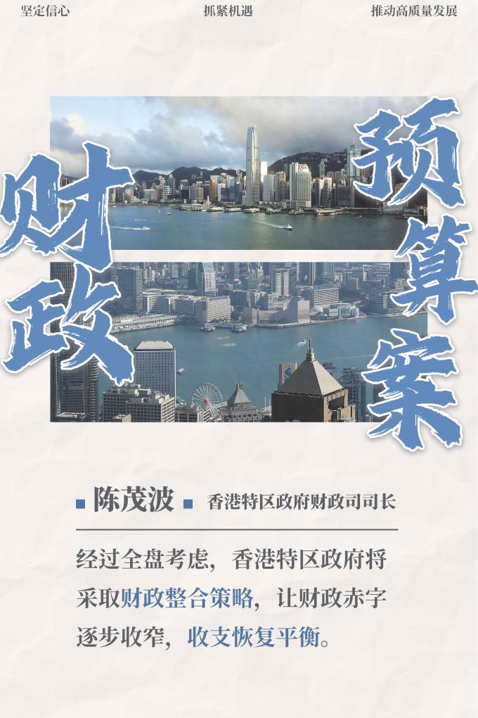 新華社香港2月28日電(記者王茜)香港特區政府財政司司長陳茂波28日公布2024/2025財政年度特區政府財政預算案,香港新一年度將堅定信心,采取財政整合策略,抓緊機遇推動高質量發展。