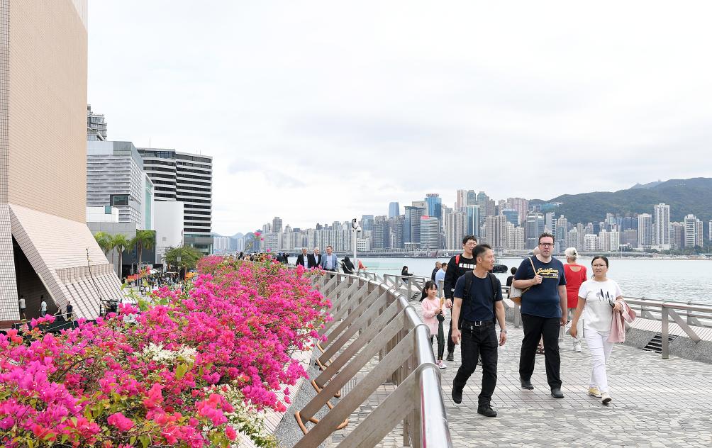 2024年3月19日,游客在香港尖沙咀游覽。新華社記者 陳鐸 攝