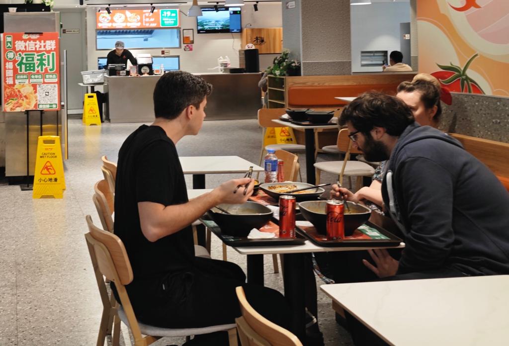 3月23日,在一內地麻辣燙品牌位于香港中環的門店內,幾名外國顧客在用餐。新華社記者 褚萌萌 攝