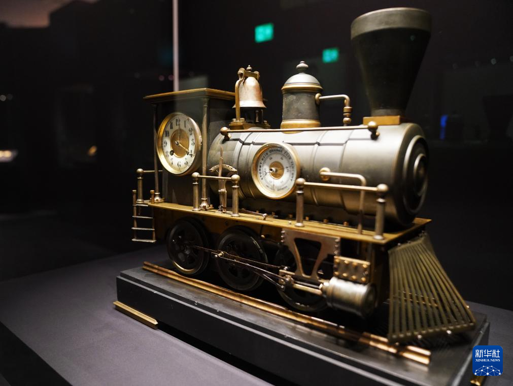 這是3月14日在香港故宮文化博物館拍攝的1900年的火車頭式鐘表。新華社記者 王申 攝