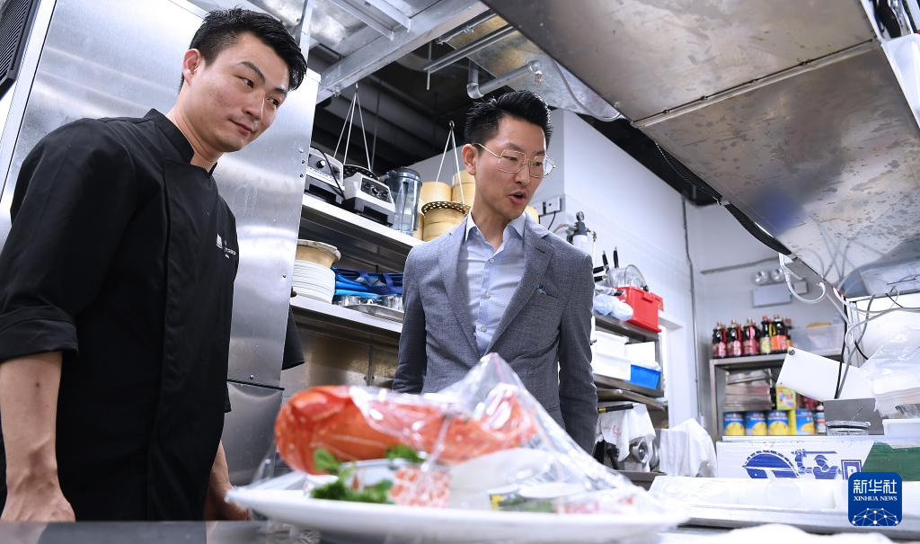 4月8日,吳振宇在廚房內檢查工作。新華社記者 陳鐸 攝