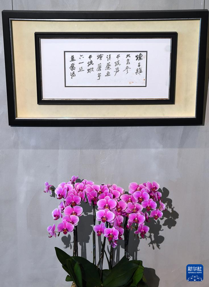 M+“CVIEW華”餐廳墻上懸掛的張大千的親筆菜單(4月8日攝)。新華社記者 陳鐸 攝