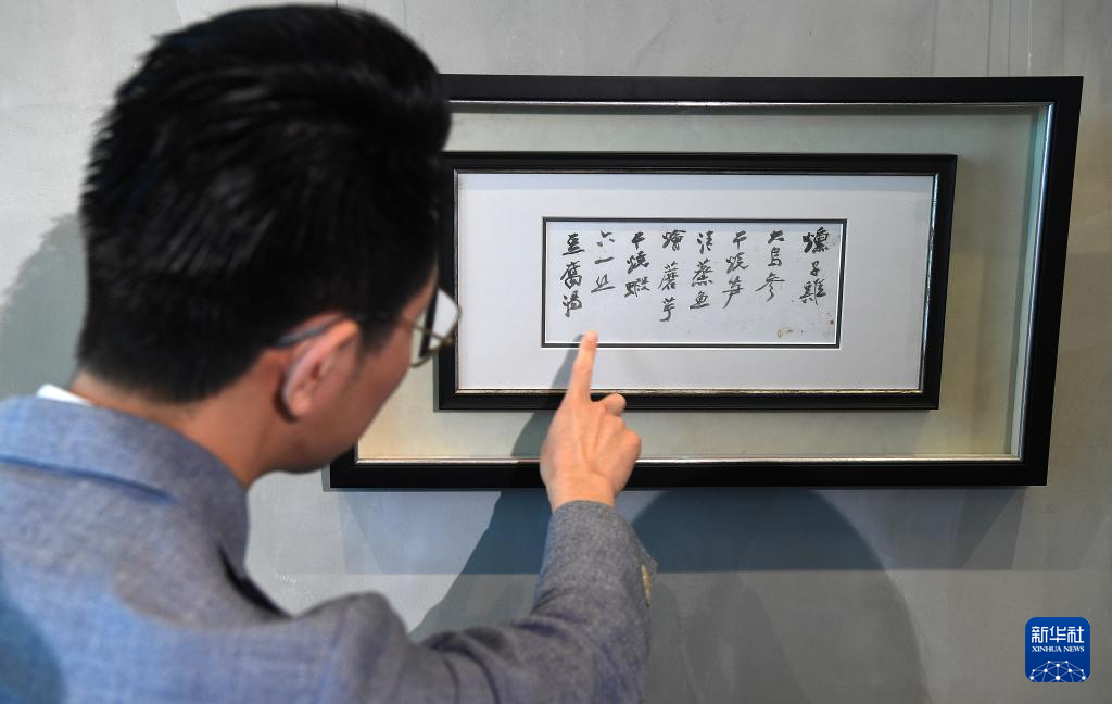 4月8日,吳振宇介紹餐廳墻上懸掛的張大千的親筆菜單。新華社記者 陳鐸 攝