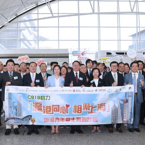 “維港兩岸圍觀C919的盛況深深打動了我們,下決心要促成這樣一趟包機,讓港青有機會親身體驗?!睖矍嗄陼飨瘲钣犁H說,“今年搭乘C919來滬實習,有助港青更直觀地感受內地發展,把握新機遇?!?/p>