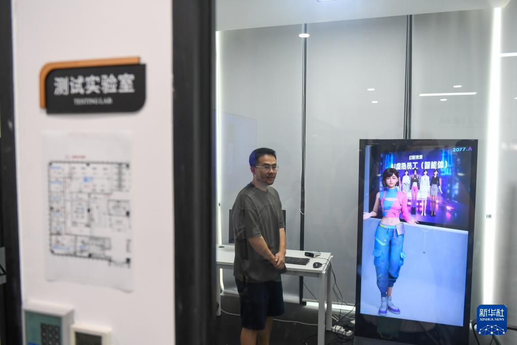 6月12日,在深圳前海深港青年夢工場,工作人員在幻影未來公司的測試實驗室與AI進行交互測試。新華社記者 毛思倩 攝