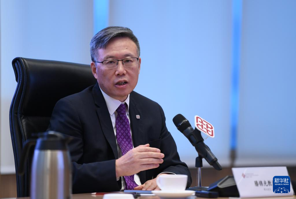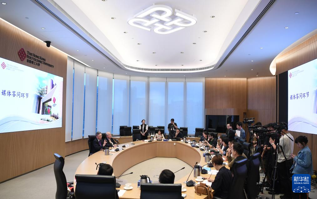 6月15日,香港理工大學校長滕錦光接受媒體團采訪。新華社記者 陳鐸 攝