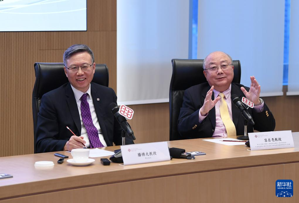 6月15日,香港理工大學校長滕錦光(左)和香港理工大學深空探測研究中心主任容啟亮接受媒體團采訪。新華社記者 陳鐸 攝