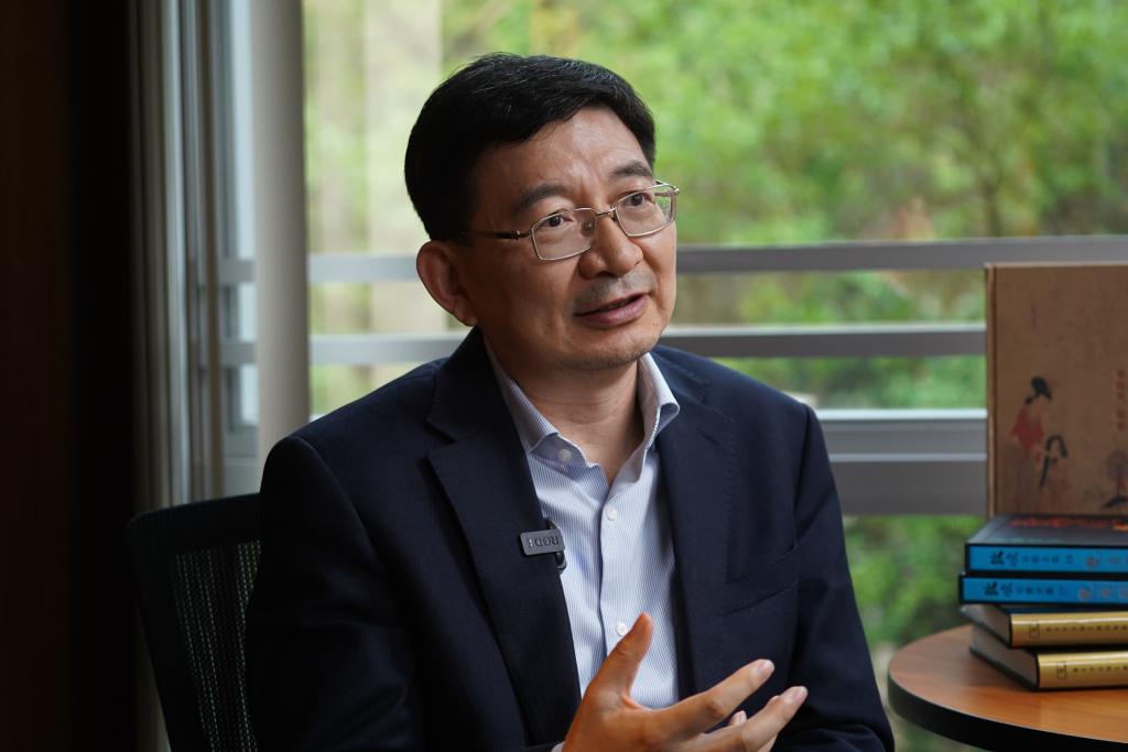 香港商務印書館總經理兼總編輯毛永波在接受記者采訪(4月30日攝)。新華社記者 龍鏡伊 攝