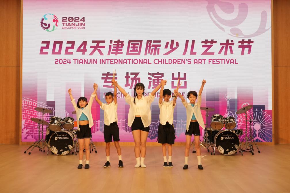 7月23日,香港夢想世紀少兒藝術團在天津演出后合影。新華社發