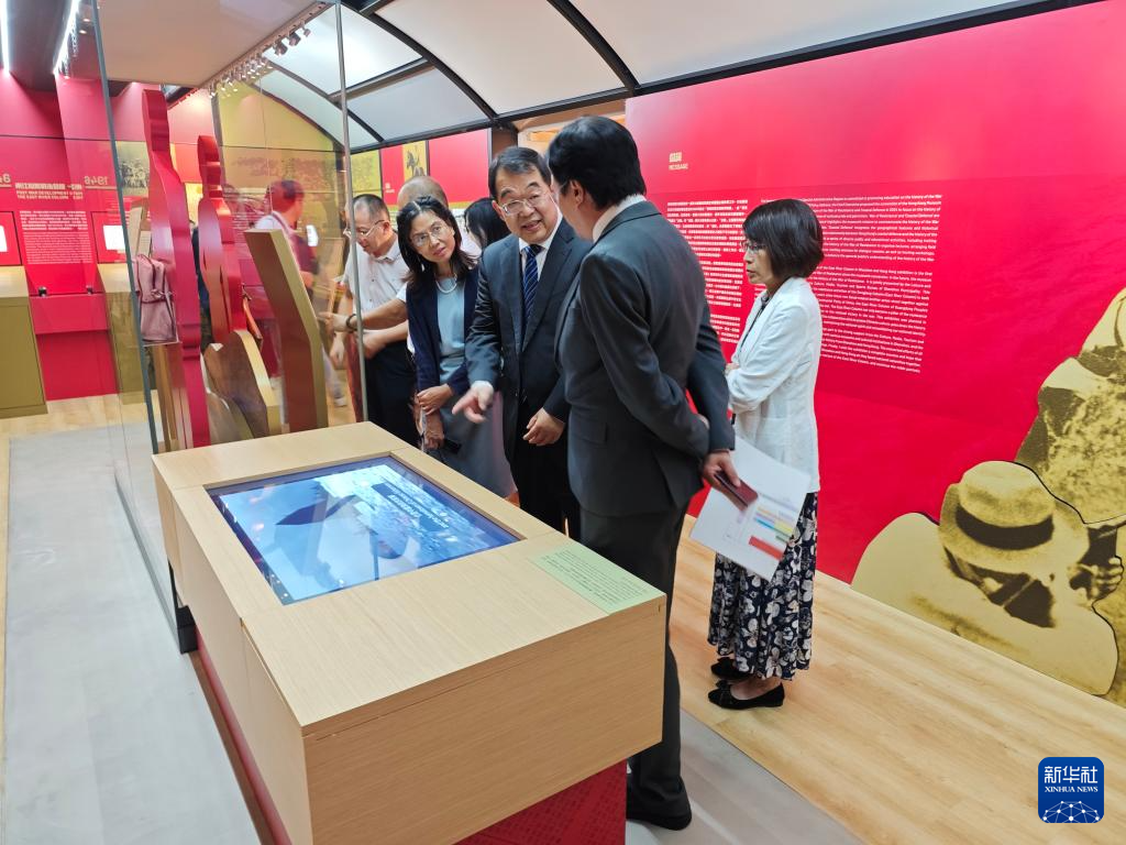 9月3日,香港歷史博物館總館長張銳森(中)介紹香港抗戰及海防博物館展覽內容。新華社記者 褚萌萌 攝
