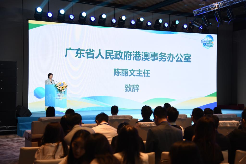廣東省港澳辦主任陳麗文在港澳青年“向新行”活動啟動儀式上發言(9月23日攝)。新華社記者 洪澤華 攝