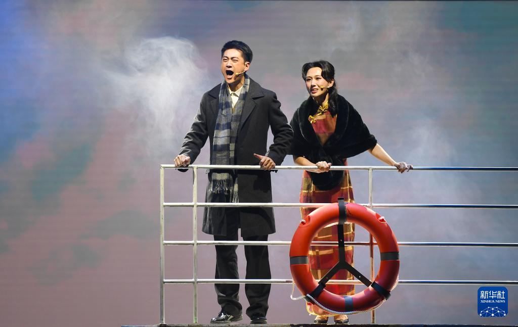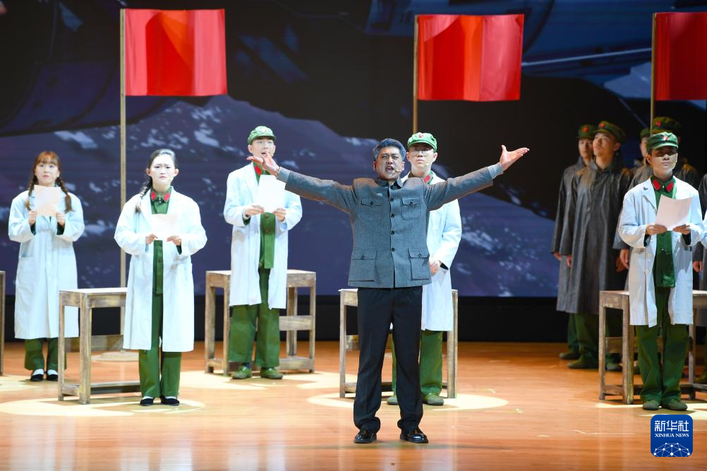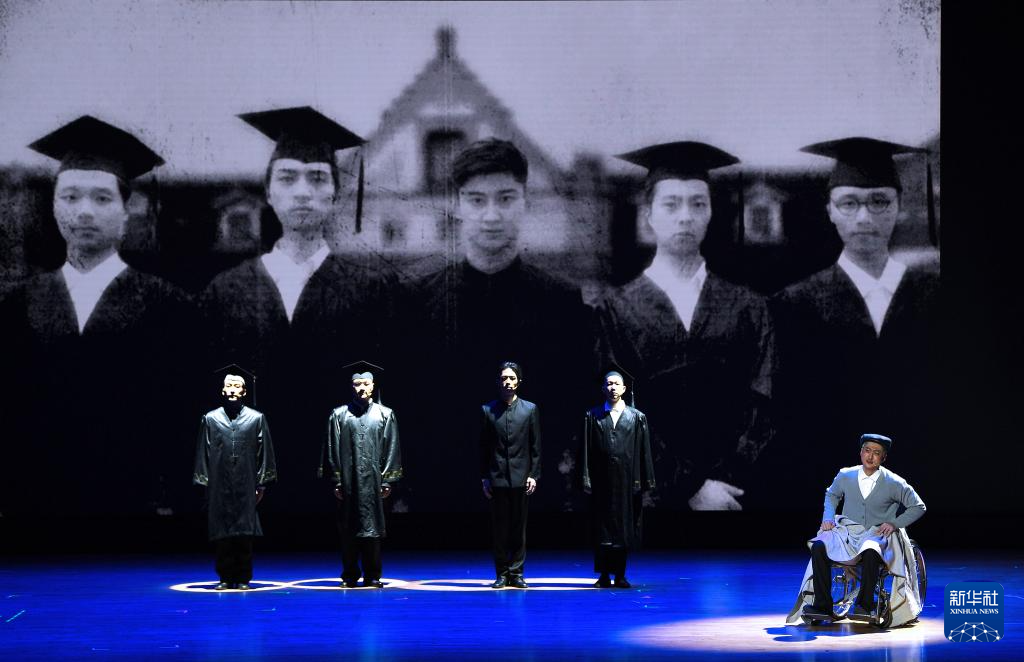 9月26日,在香港理工大學賽馬會綜藝館,演員在話劇《錢學森》中表演。新華社記者 陳鐸 攝