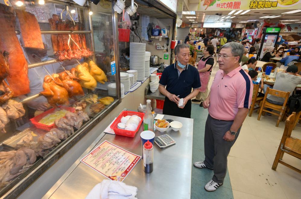 10月1日,香港約3600家食肆推出折扣。圖為灣仔鵝頸街市一家推出外賣優惠的燒味店。新華社發(香港特區政府供圖)