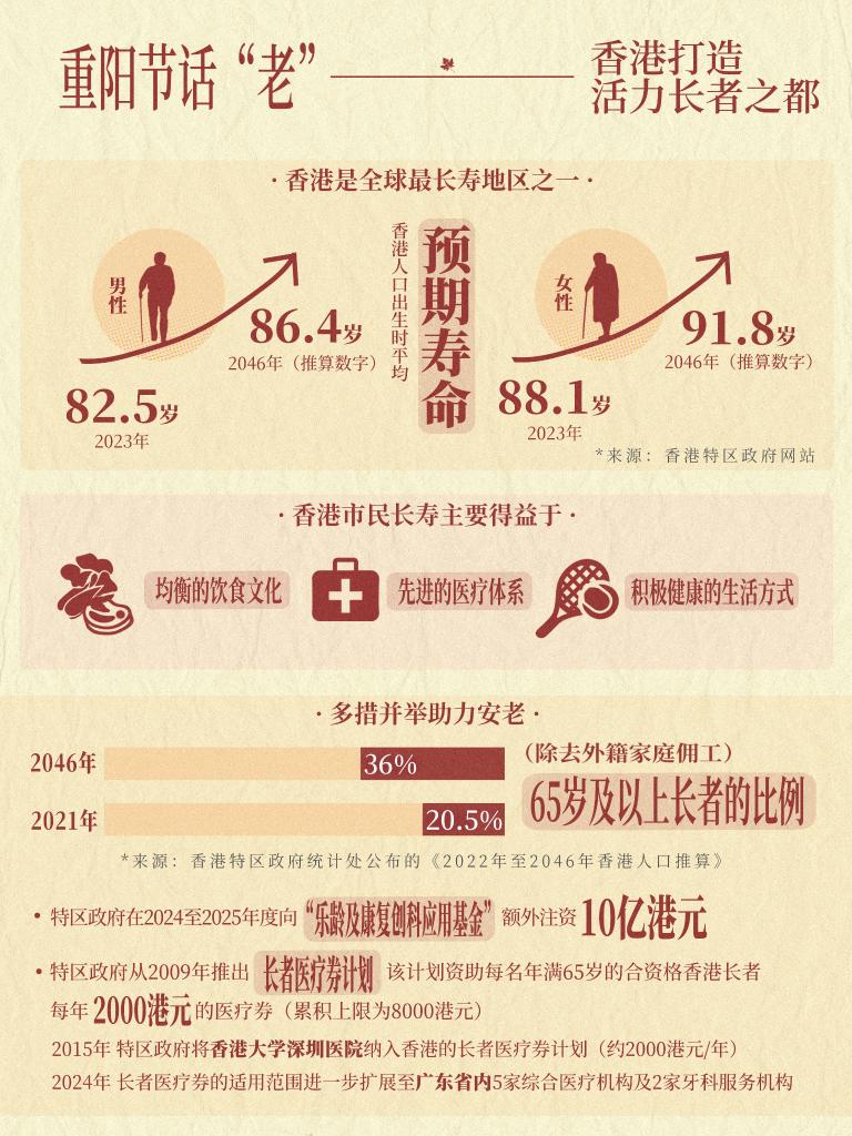 登高、祭祖,敬老、感恩……在全球最長壽地區之一的香港,人們十分重視重陽節。如何照顧好家中老人,如何面對自己逐漸老去,是很多人共同關心的話題。讓長者健康且有質量地安享晚年,是香港特區政府和每個香港家庭的共同目標。
