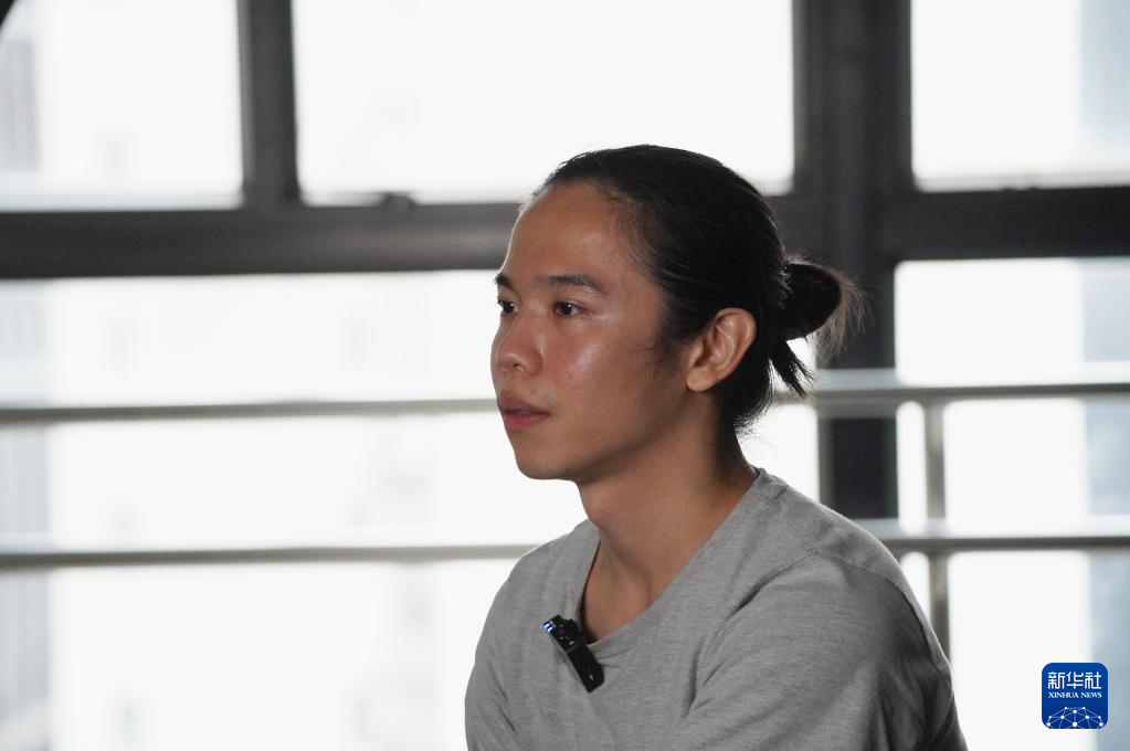 香港舞蹈團首席舞蹈員王志昇在接受記者采訪(9月24日攝)。 新華社發(譚佳銘 攝)