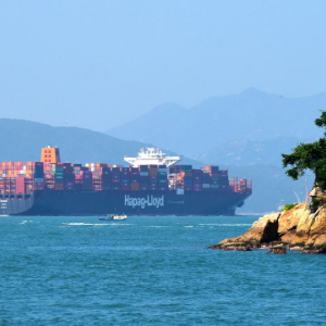 2023年11月20日,一艘赫伯羅特公司集裝箱船駛向香港貨柜碼頭。新華社記者 陳鐸 攝