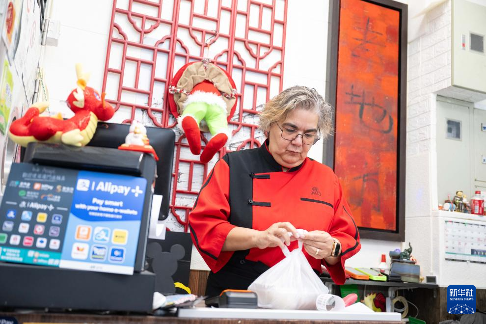 土生葡人馬安娜準備客人的外賣(12月3日攝)。新華社發(張金加攝)