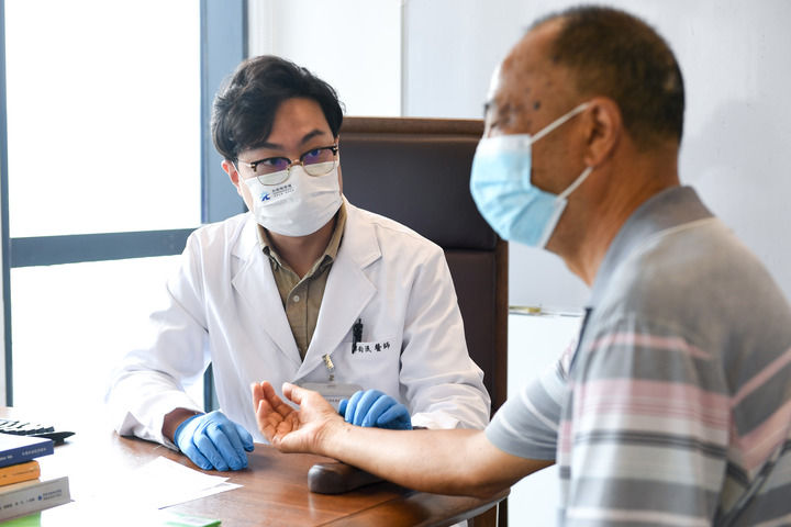 來自香港的注冊中醫師郭鈞泯(左)在深圳市中醫藥傳承發展研究院為病人看診(2023年9月4日攝)。新華社記者 毛思倩 攝