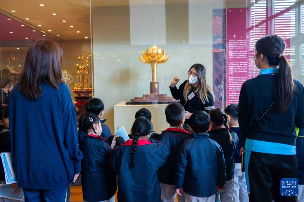 12月17日,學生在澳門回歸賀禮陳列館參觀。新華社記者 朱煒 攝