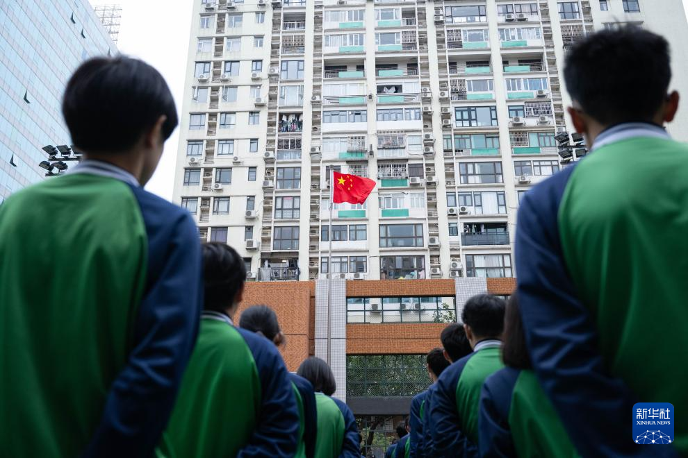 12月9日,澳門教業中學舉行升國旗儀式。新華社發(張金加攝)