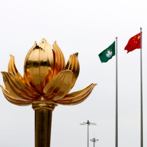 圖為在澳門金蓮花廣場拍攝的“盛世蓮花”雕塑(2024年11月21日攝)。新華社記者王益亮攝