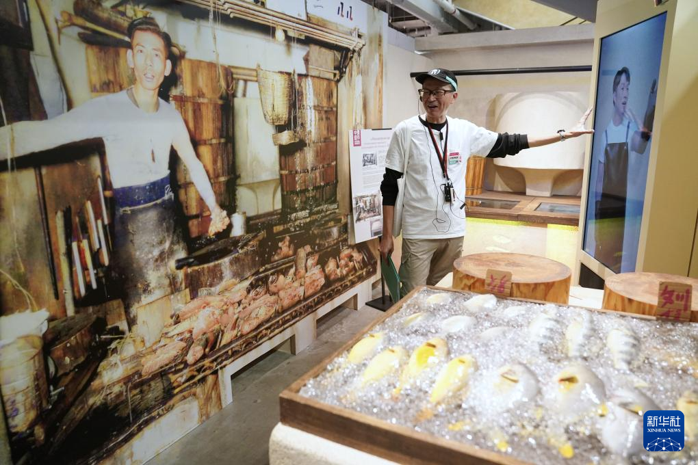 導賞員在香港中環街市介紹以前的魚檔(11月21日攝)。新華社發(王申攝)