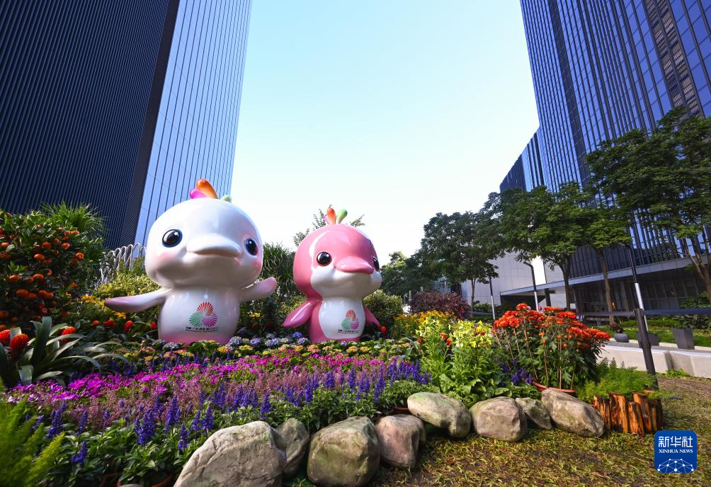 在金鐘,2米多高的第十五屆全國運動會吉祥物“喜洋洋”“樂融融”從除夕開始現身添馬公園,與大家共賀新春,喜迎全運。