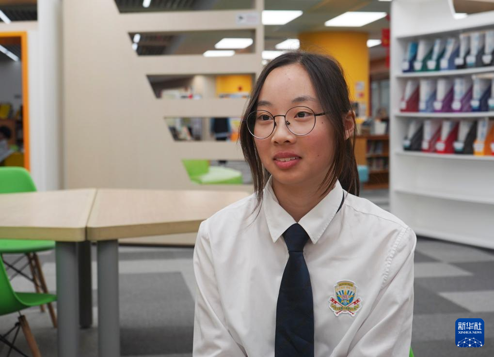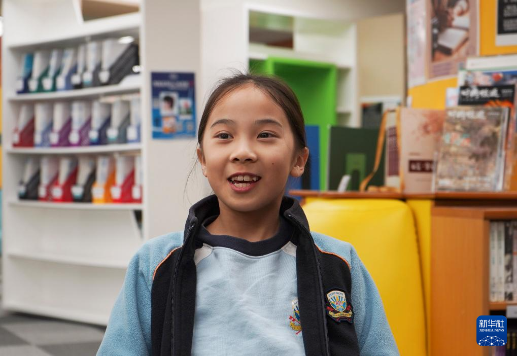 王錦輝中小學學生陳昭瑀講述自己將大熊貓圖案設計在社區海濱長廊中的故事(2025年2月10日攝)。新華社發(譚佳銘攝)