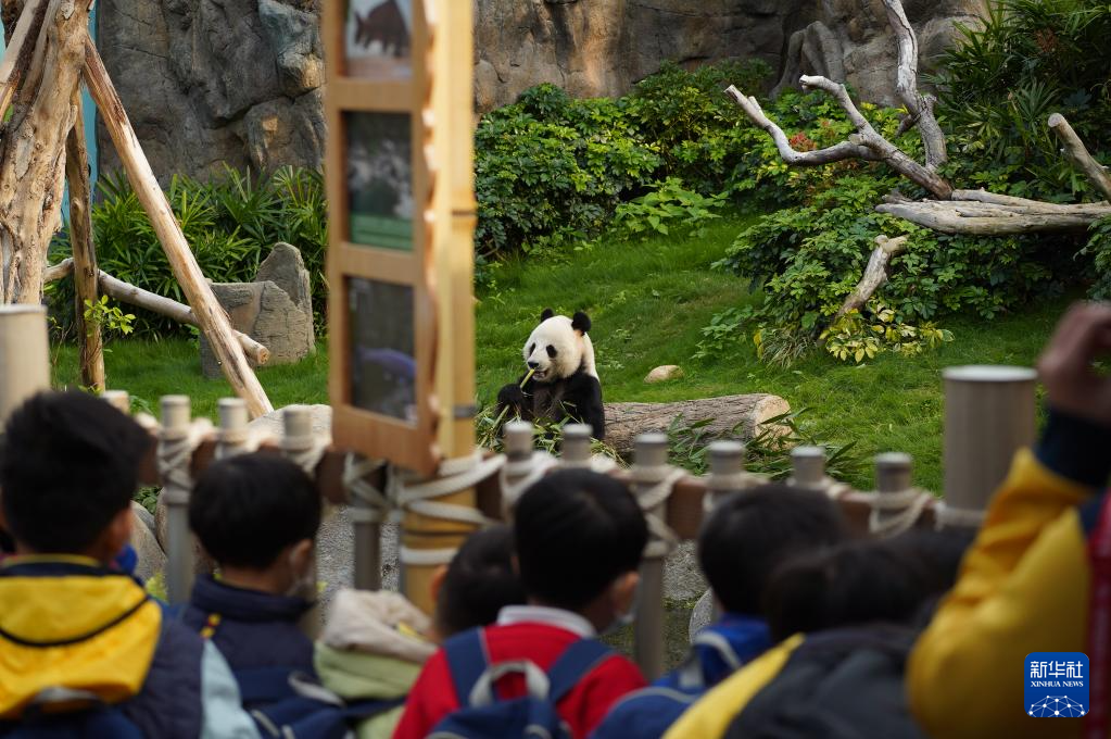 位于港島南的香港海洋公園更是儼然成了一座“熊貓樂園”。漫步園中,憨態可掬的大熊貓卡通裝置隨處可見,引人“打卡”合影。