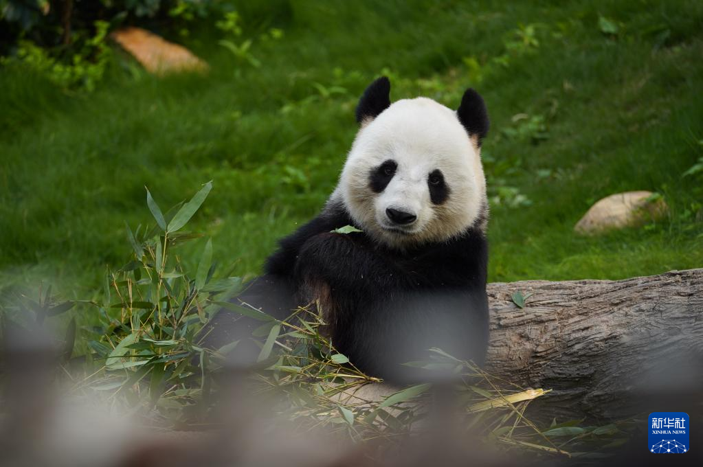 一墻之隔,同齡的“安安”則是大體格、黑色毛發旺盛的“猛男”。它從內場走出,便一頭扎入“竹?!?,四仰八叉地躺在木架上大快朵頤。