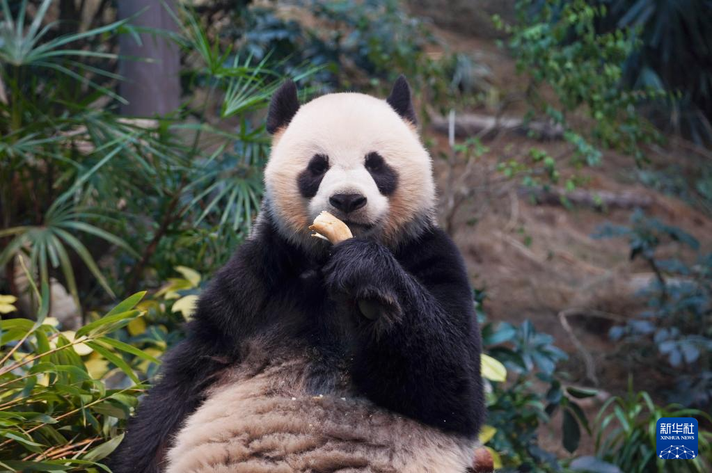 這是居住在香港海洋公園的中央贈港大熊貓“可可”(2025年1月16日攝)。新華社記者 褚萌萌 攝