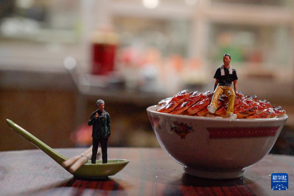 《九龍城寨之圍城》電影展覽內的電影主角微縮模型(2024年12月16日攝)。新華社發(龍鏡伊 攝)