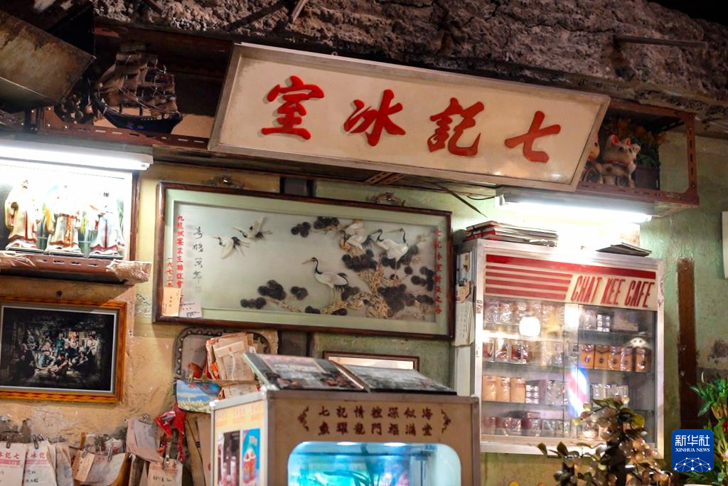 《九龍城寨之圍城》電影展覽內的“七記冰室”展區(2024年12月16日攝)。新華社發(龍鏡伊 攝)