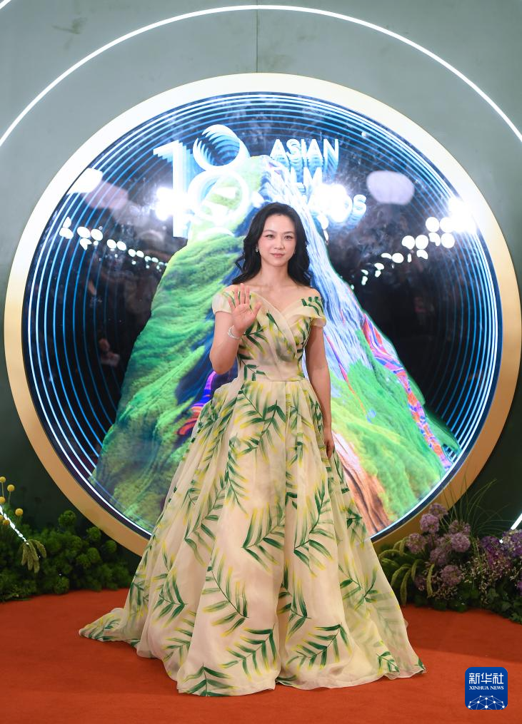3月16日,演員湯唯在紅毯亮相,她獲頒卓越亞洲電影人大獎。新華社記者 陳鐸 攝
