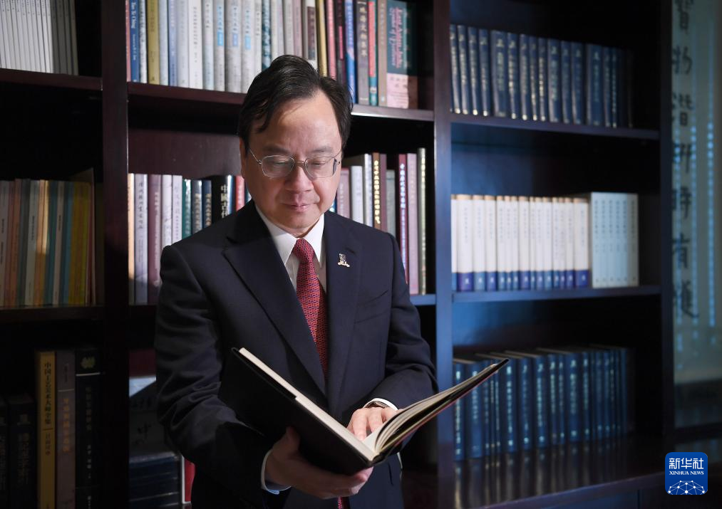 4月23日,香港中文大學校長盧煜明在翻閱圖書。新華社記者 陳鐸 攝