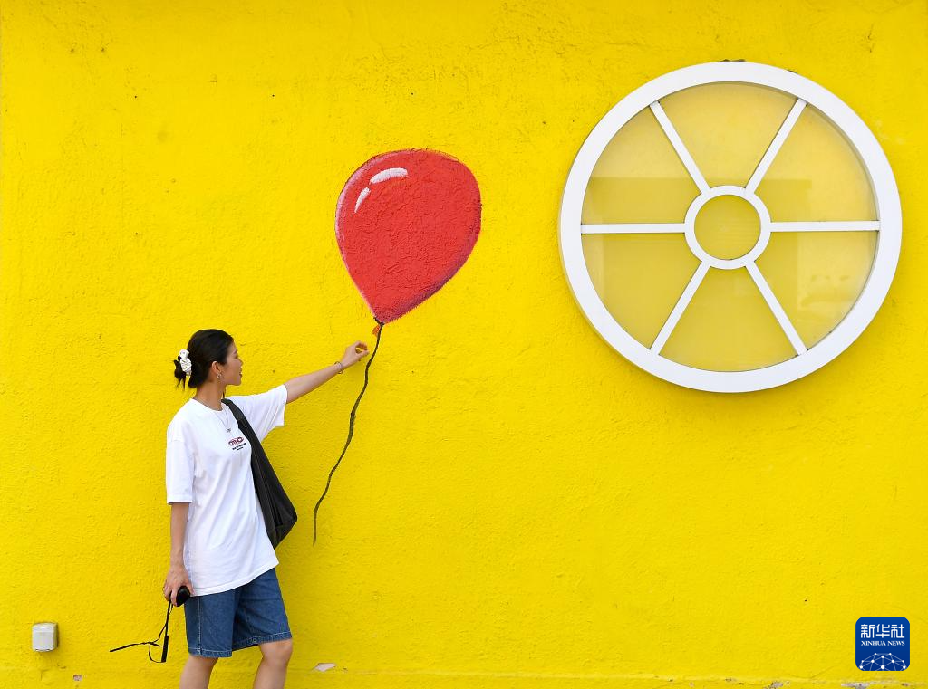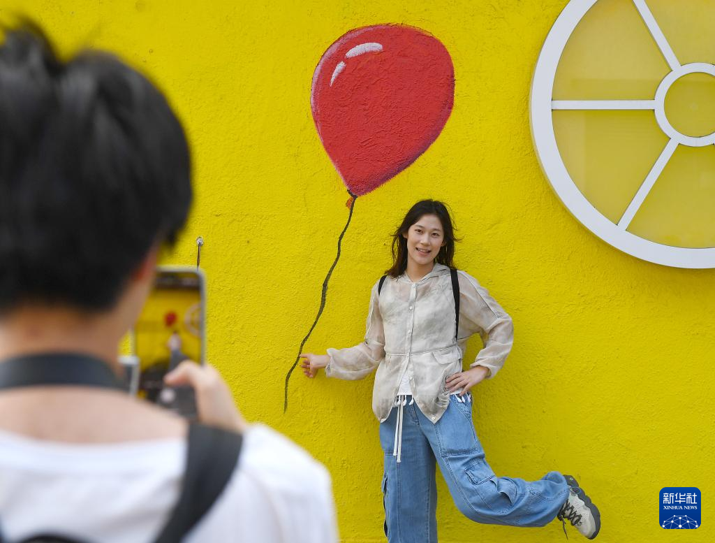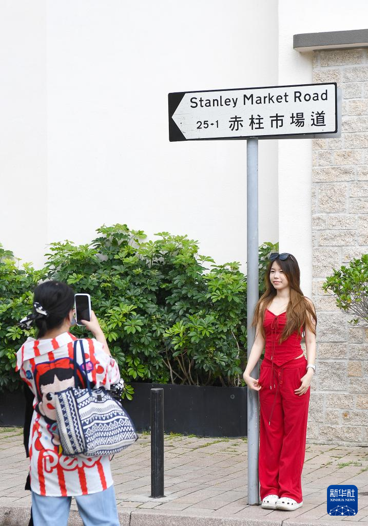 5月4日,游客在香港赤柱市場道打卡拍照。新華社記者 陳鐸 攝