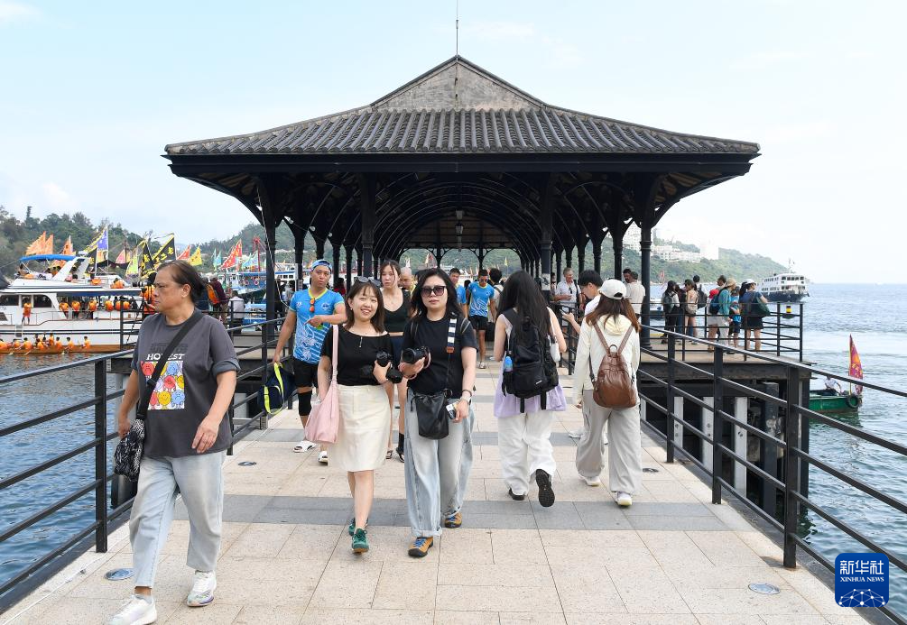 5月4日,游客進出香港赤柱卜公碼頭。新華社記者 陳鐸 攝